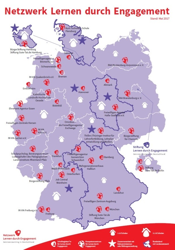 Qualifizierte Multiplikator*innen beraten und begleiten Schulen zu Lernen durch Engagement, und Thüringer Schulen setzen Lernen-durch-Engagement-Projekte um. Mit Verlängerung der Kooperationsvereinbarung zwischen dem Thüringer Ministerium für Bildung, Jugend und Sport und der Stiftung Lernen durch Engagement im September 2019 ist die Koordination des Thüringer Schulnetzwerks und der Ausweitung der Lehr- und Lernform in Thüringen bis mindestens Mitte 2022 sichergestellt.