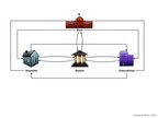 Die Grafik gehört zur Serie "Wirtschaftskreislauf". Dargestellt ist der erweiterte Wirtschaftskreislauf (Haushalte, Unternehmen, Banken), s/w mit Beschriftungsvorschlag. Es gelten die Nutzungsbedingungen der Mediothek und Pixiothek.