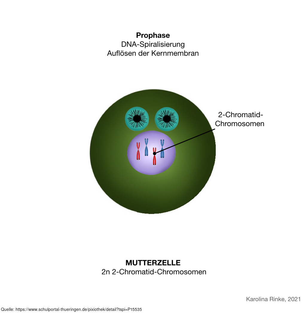 Das Bild gehört zur Serie "Mitose und Meiose" und verdeutlicht den Ablauf der Mitose, hier die Prophase. Variante: farbig. Es gelten die Nutzungsbedingungen der Mediothek und Pixiothek.