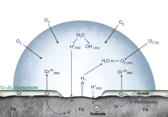 Das Bild gehört zur Serie „Korrosion und Korrosionsschutz“. Es verdeutlicht den Korrosionsschutz eines Eisenwerkstoffes mit Hilfe eines unedlen Metalls. Bild-Variante: farbig, beschriftet, ohne Erläuterung. Es gelten die Nutzungsbedingungen der Mediothek und Pixiothek.