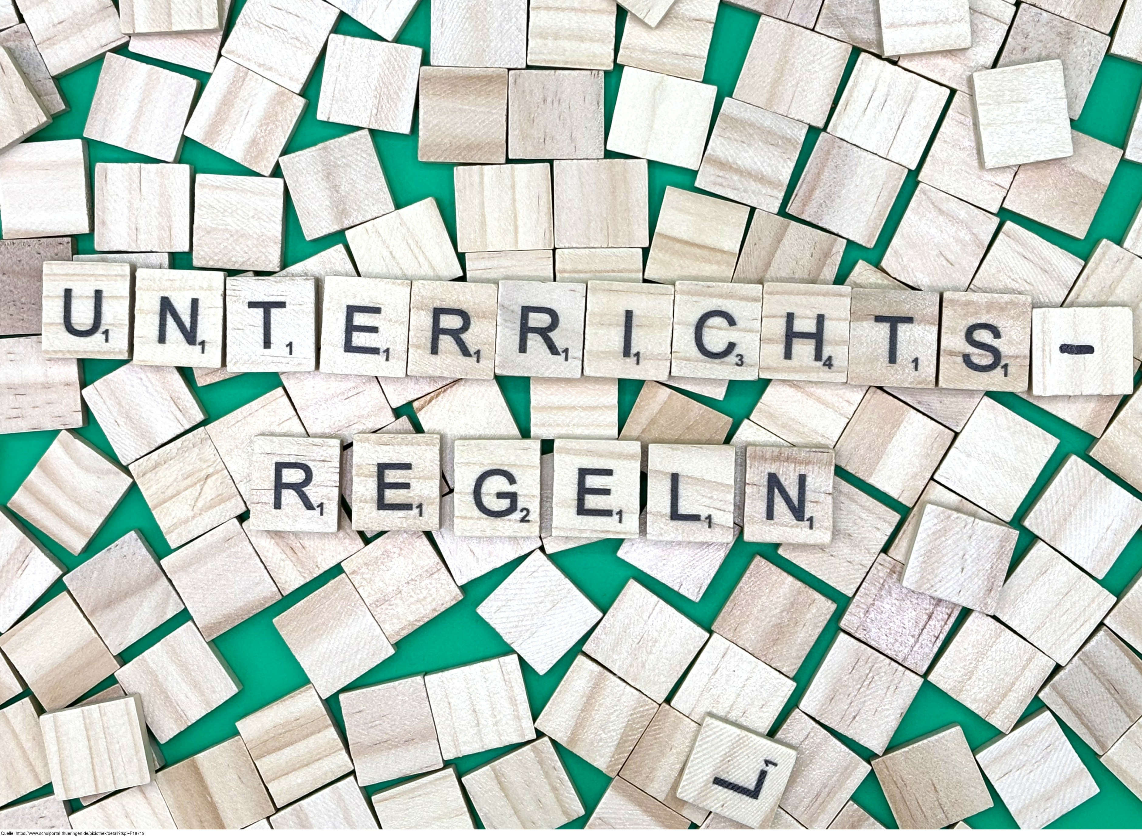 Aus Buchstaben wurde der Begriff „Unterrichtsregeln" gelegt. Es gelten die Nutzungsbedingungen der Mediothek und Pixiothek.