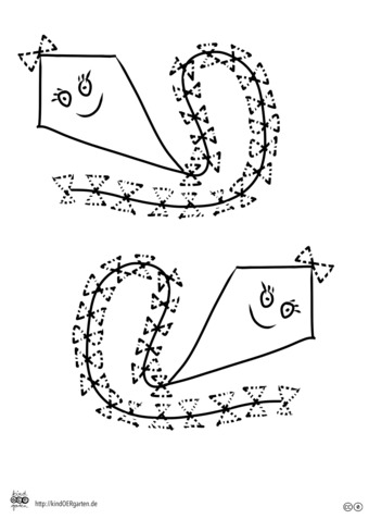 Das Bild zeigt zwei Drachen aus Papier (s/w) und kann als Schwungübung für Kinder im Kindergarten bzw. Elementarbereich dienen. Das Bild ist unter CC0 lizenziert und kann somit frei verwendet werden. Es ist neben weiteren Bildern auch hier zu finden: https://kindoergarten.wordpress.com/