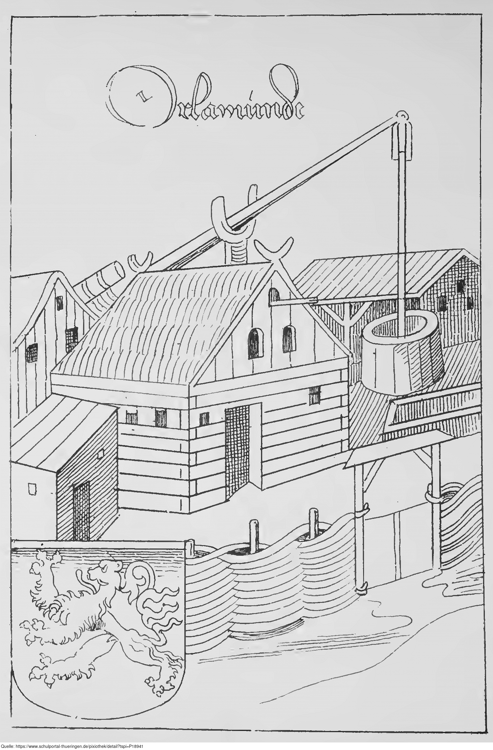 Die Darstellung der Stadt Orlamünde stammt aus dem 1486 erschienenen Wappenbuch von Conrad Grünenberg.