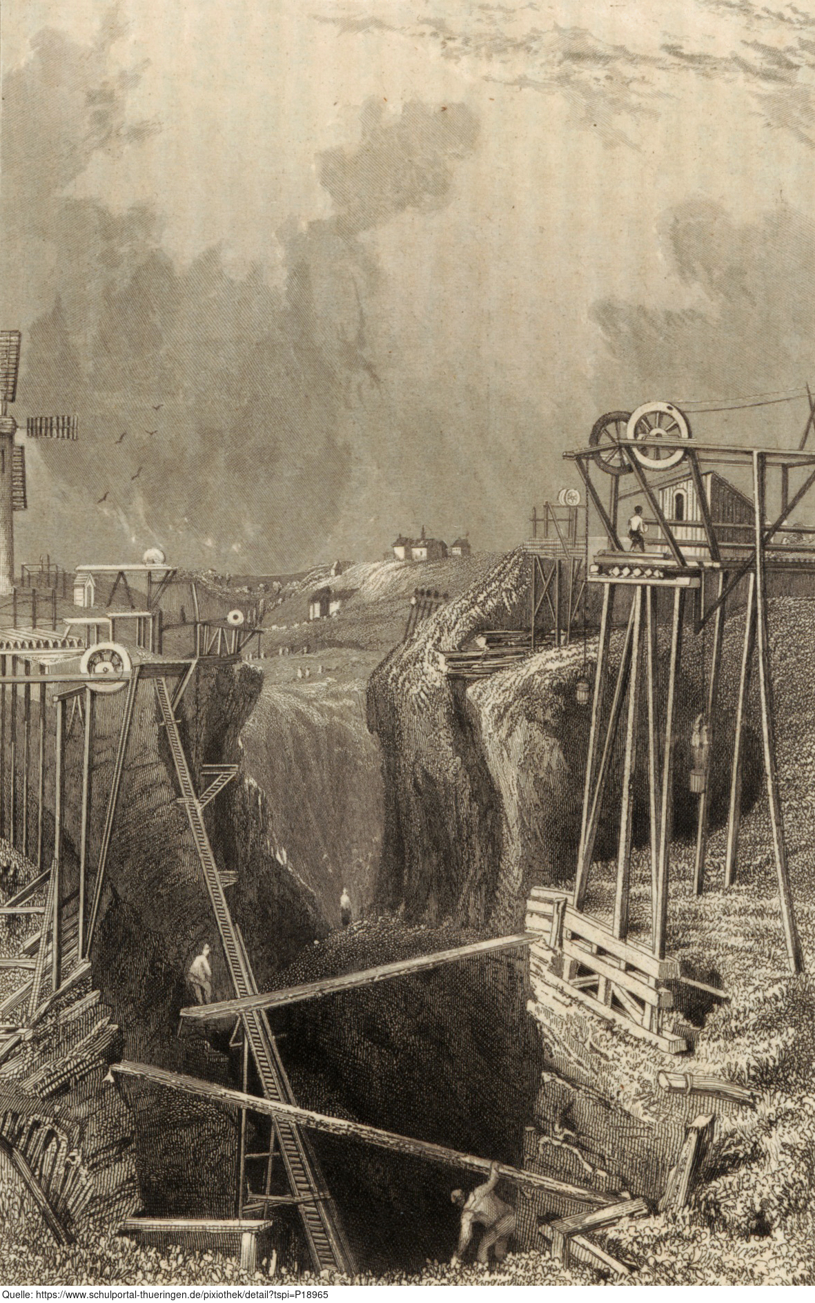 Die Abbildung zeigt die Eisenminen zu Dannemora. Die Eisenminen von Dannemora in Schweden waren über Jahrhunderte hinweg Schwedens wichtigstes Eisenerzbergwerk, bekannt für die Produktion hochreinen Eisenerzes, das für seine Qualität berühmt war und unter anderem in der Wallonischen Schmiedekunst verwendet wurde, bis das Bergwerk 1992 geschlossen wurde. Die Minen wurden bereits im 13. Jahrhundert erwähnt.