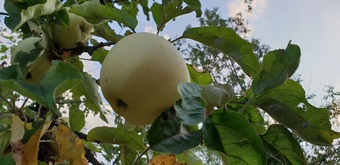 Das Bild zeigt einen Apfel an einem Zweig auf dem ApfelGut Erfurt. Es gelten die Nutzungsbedingungen der Mediothek und Pixiothek.