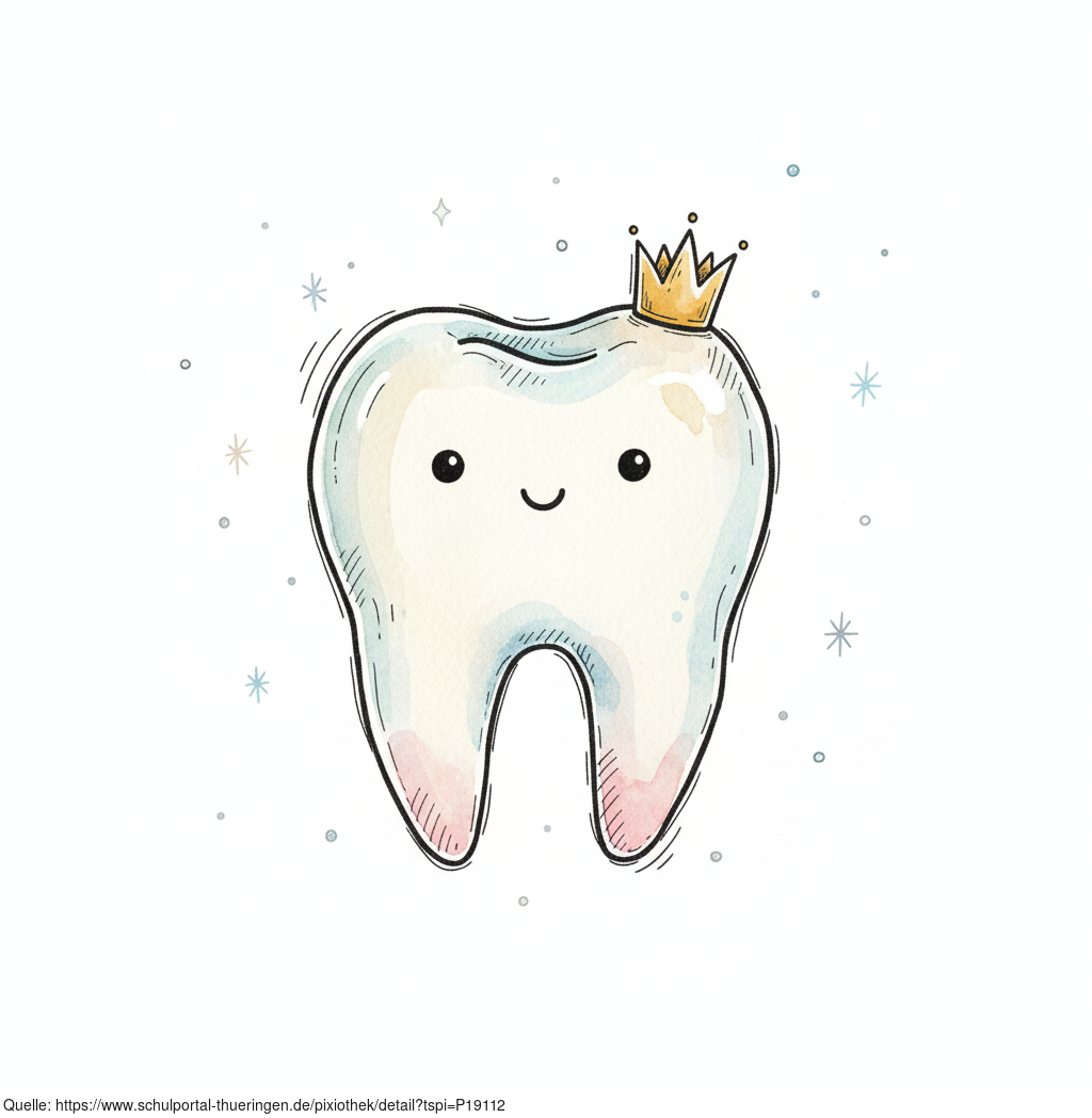 Das Bild zeigt einen gezeichneten Zahn. Das Bild wurde mittels einer KI (Gemini) erstellt und ist unter CC0 lizenziert. Weitere Bilder aus Herrn Emrich-Försters Bild-Archiv findet man hier: https://pix.foerster.rocks/