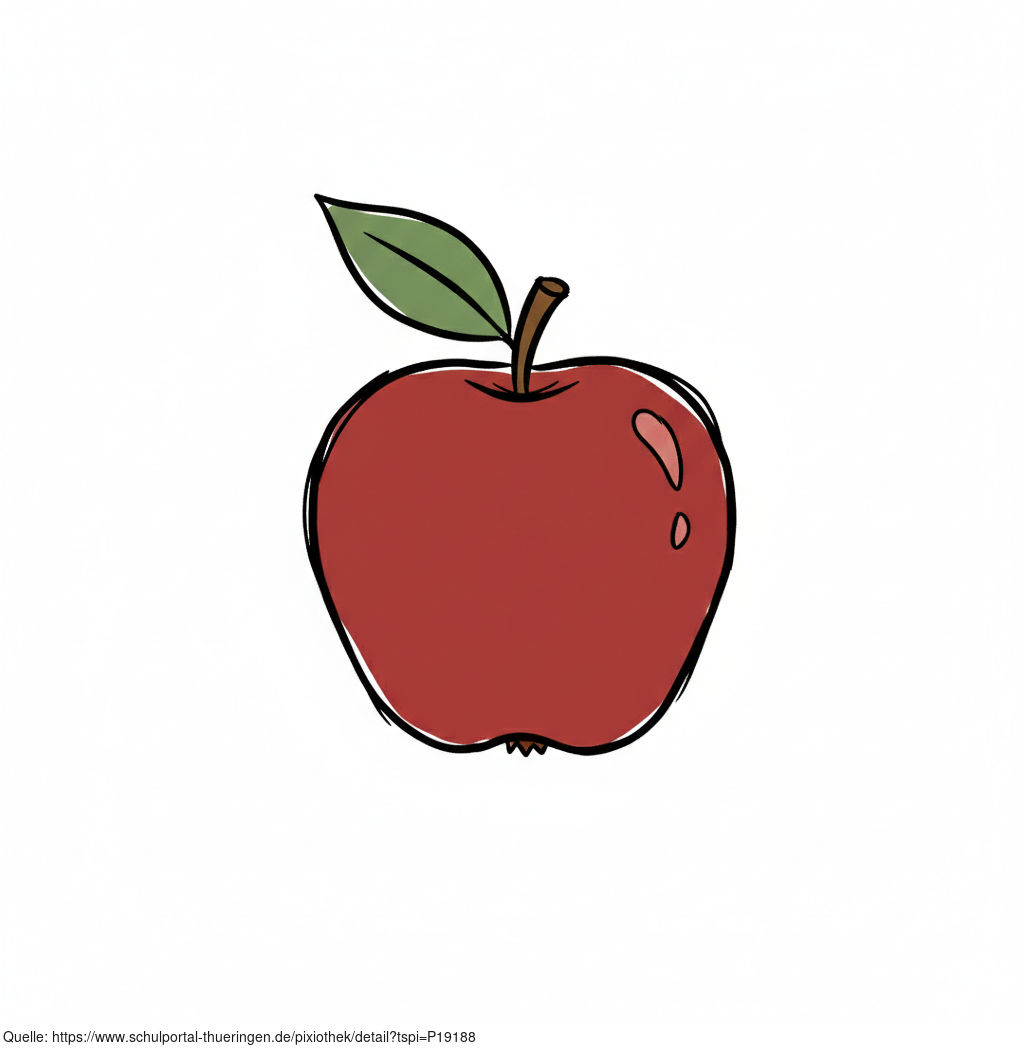 Das Bild zeigt einen gezeichneten Apfel. Das Bild wurde mittels einer KI (Gemini) erstellt und ist unter CC0 lizenziert. Weitere Bilder aus Herrn Emrich-Försters Bild-Archiv findet man hier: https://pix.foerster.rocks/