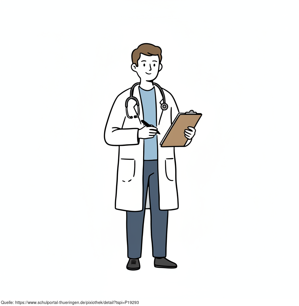 Das Bild zeigt einen gezeichneten Arzt mit Stethoskop. Das Bild wurde mittels einer KI (Gemini) erstellt und ist unter CC0 lizenziert. Weitere Bilder aus Herrn Emrich-Försters Bild-Archiv findet man hier: https://pix.foerster.rocks/