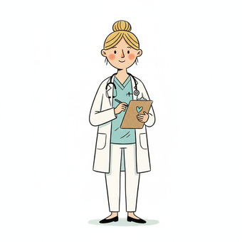 Das Bild zeigt eine gezeichnete Ärztin mit Stethoskop. Das Bild wurde mittels einer KI (Gemini) erstellt und ist unter CC0 lizenziert. Weitere Bilder aus Herrn Emrich-Försters Bild-Archiv findet man hier: https://pix.foerster.rocks/