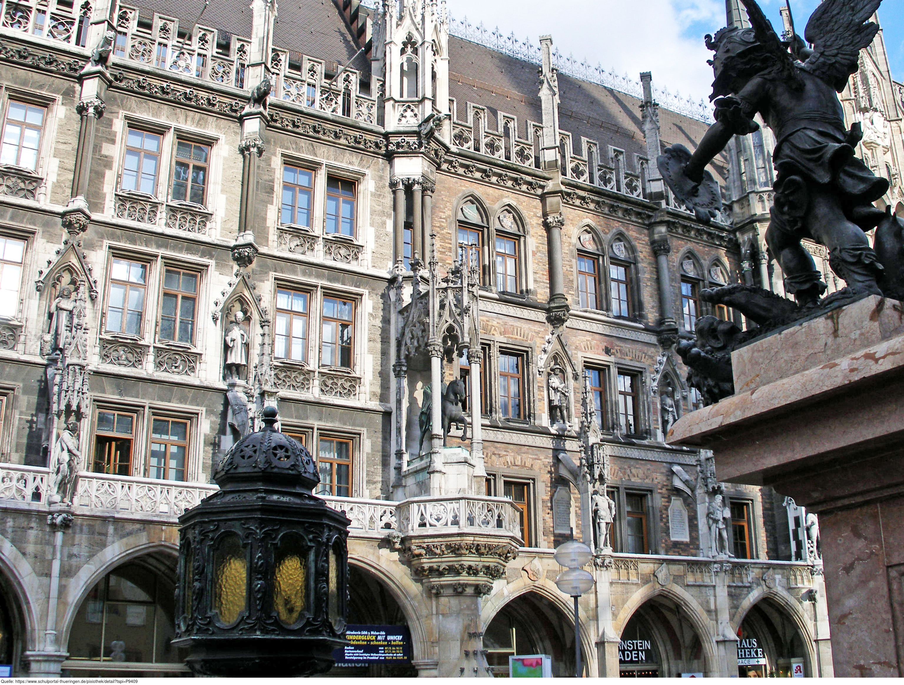 Das Foto gehört zur Serie "München". Es zeigt Details vom Neuen Rathaus am Marienplatz. Der Marienplatz ist der zentrale Platz der Münchner Innenstadt und Beginn der Fußgängerzone. Das Bild ist unter CC0 lizenziert und kann somit frei verwendet werden.