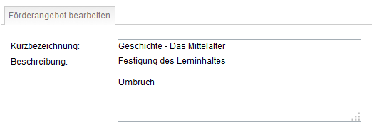 Kurzbezeichnung (Name des Angebotes) und Beschreibung sind Pflichtfelder.