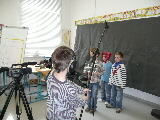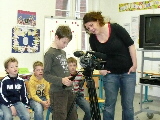 Danach führten wir Interviews mit einer Märchenfigur durch. Das sah so aus, dass ein Kind der Moderator war und in seiner Fernsehsendung eine Märchenfigur- das zweite Kind- zu Gast hatte. Wer dies allerdings war, erfuhr er erst, nachdem er zu sprechen begonnen hatte. Dies erforderte ein schnelles Hineindenken in das entsprechende Märchen, sprachliches Ausdrucksvermögen sowie ein sicheres Auftreten vor der Kamera. Einigen gelang das recht schnell, einen Beweis davon findet man im Vorspann zum Film.