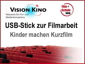 Um Lehrkräfte bei der filmpädagogischen Arbeit im Unterricht zu unterstützen, hat VISION KINO gemeinsam mit der Initiative Film + Schule NRW einen USB-Stick entwickelt, der umfangreiche Materialen und freie Software für die theoretische und praktische Filmarbeit mit Schülerinnen und Schülern bündelt. Die Inhalte sind thematisch sortiert in der Serie "Materialien zur filmpädagogischen Arbeit" abrufbar.