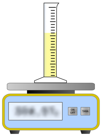 Das Bild gehört zur Serie "Chemie Grafiken". Es zeigt eine Waage mit Messzylinder und gelber Flüssigkeit. Das Bild ist unter CC0 lizenziert und kann somit frei verwendet werden.
