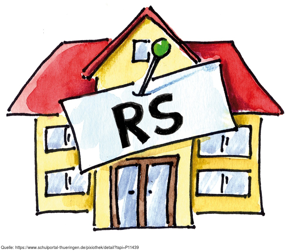 Das Bild gehört zur Serie "Schulformen". Es zeigt ein gezeichnetes Symbolbild für die Schulform Realschule (RS). Es ist auch für die Thüringer Regelschule geeignet. Es gelten die Nutzungsbedingungen der Mediothek und Pixiothek.