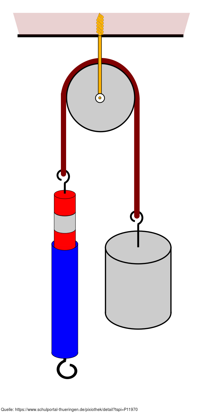 Das Bild gehört zur Serie "Physik, Mechanik". Es zeigt eine feste Rolle mit angehängtem Massenstück und Federkraftmesser. Das Bild ist unter CC0 lizenziert und kann somit frei verwendet werden.