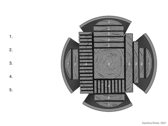 Die Grafik gehört zur Serie "Holzbearbeitung". Dargestellt sind Arten von Schnittholz, die in einem Sägewerk aus einem Baumstamm hergestellt werden, Bild-Variante: s/w, ohne Beschriftung. Es gelten die Nutzungsbedingungen der Mediothek und Pixiothek.