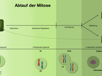 Das Bild gehört zur Serie "Mitose und Meiose" und verdeutlicht die Meiose in einer Übersichtsdarstellung. Variante: farbig; unbeschriftet; farbiger Hintergrund. Es gelten die Nutzungsbedingungen der Mediothek und Pixiothek.