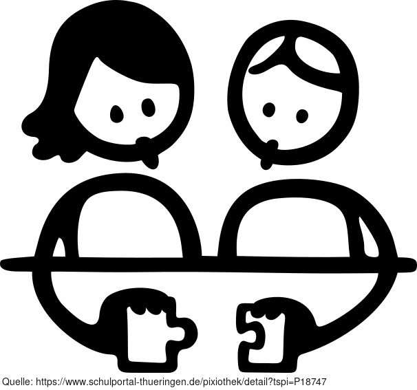 Die Zeichnung zeigt eine symbolhafte Szene zur Darstellung von Partnerarbeit. Das Bild ist unter CC0 lizenziert und kann somit frei verwendet werden. Es ist neben weiteren Bildern auch hier zu finden: https://cocomaterial.com