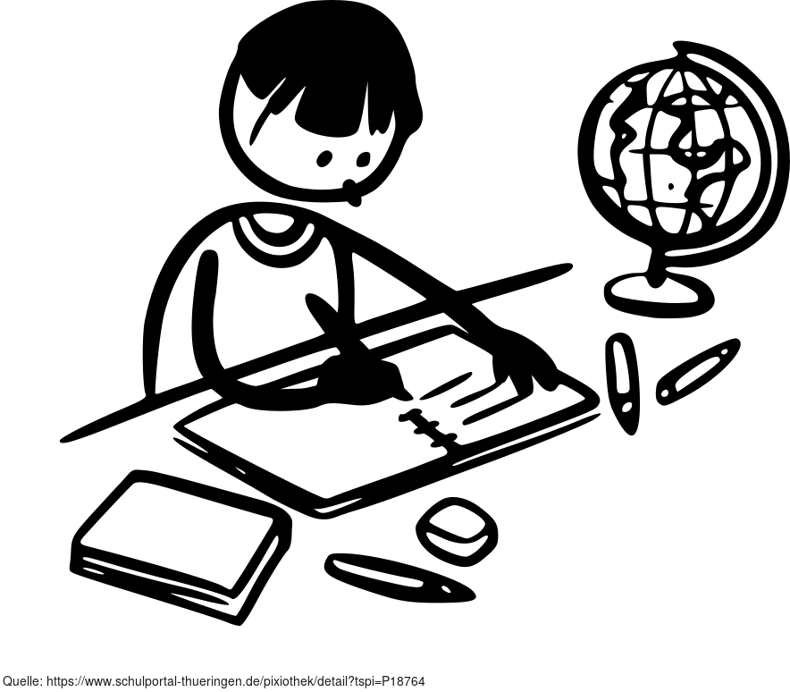 Die Zeichnung zeigt einen Schüler. Das Bild ist unter CC0 lizenziert und kann somit frei verwendet werden. Es ist neben weiteren Bildern auch hier zu finden: https://cocomaterial.com