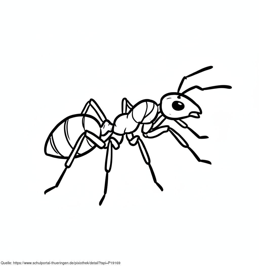 Das Bild zeigt eine gezeichnete Ameise. Das Bild wurde mittels einer KI (Gemini) erstellt und ist unter CC0 lizenziert. Weitere Bilder aus Herrn Emrich-Försters Bild-Archiv findet man hier: https://pix.foerster.rocks/