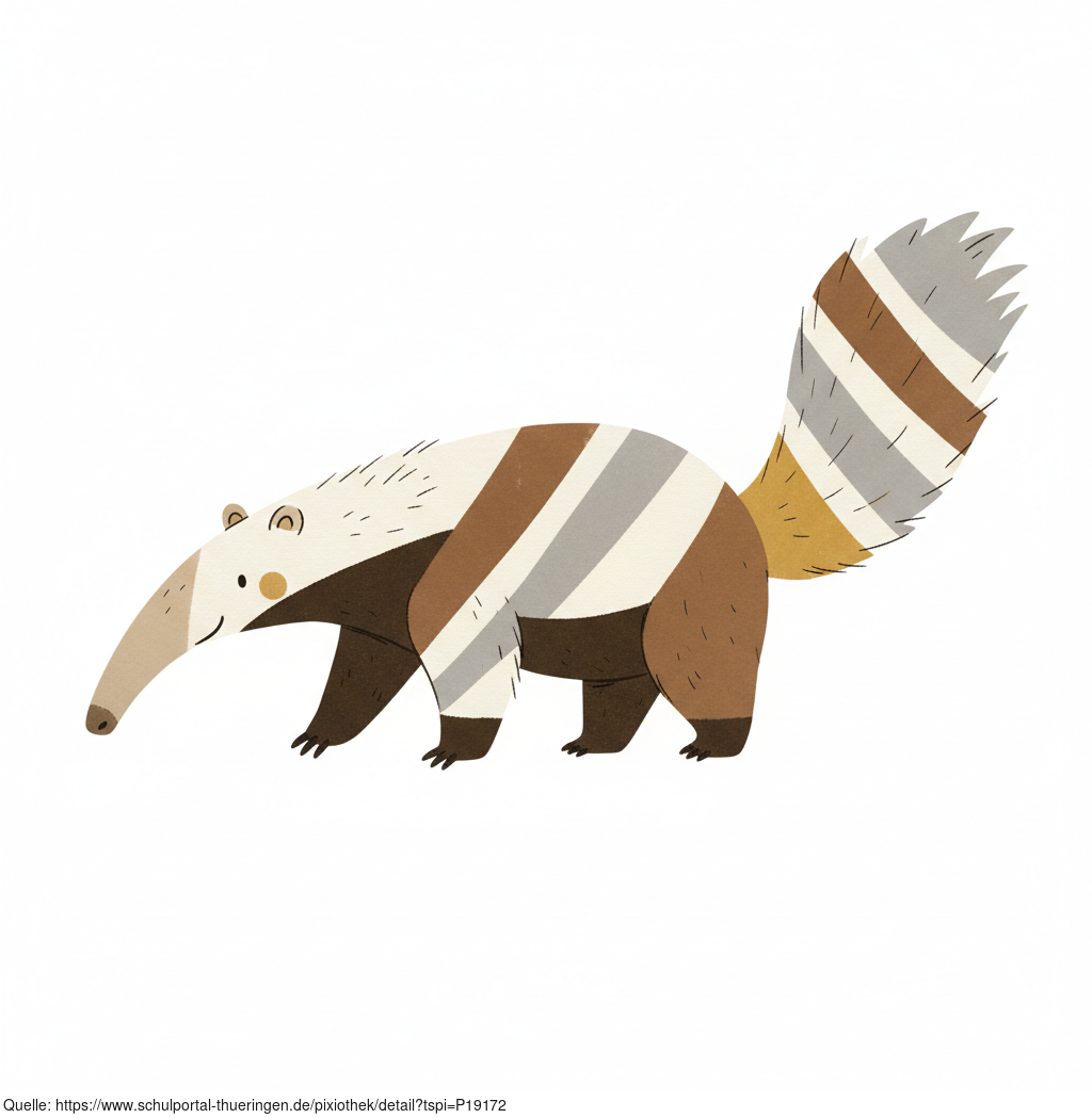 Das Bild zeigt einen gezeichneten Ameisenbär. Das Bild wurde mittels einer KI (Gemini) erstellt und ist unter CC0 lizenziert. Weitere Bilder aus Herrn Emrich-Försters Bild-Archiv findet man hier: https://pix.foerster.rocks/