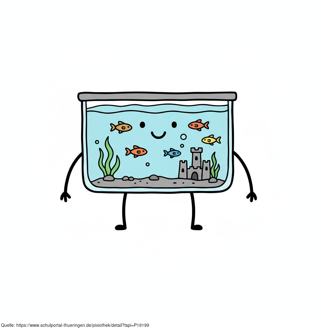 Das Bild zeigt ein gezeichnetes Aquarium. Das Bild wurde mittels einer KI (Gemini) erstellt und ist unter CC0 lizenziert. Weitere Bilder aus Herrn Emrich-Försters Bild-Archiv findet man hier: https://pix.foerster.rocks/
