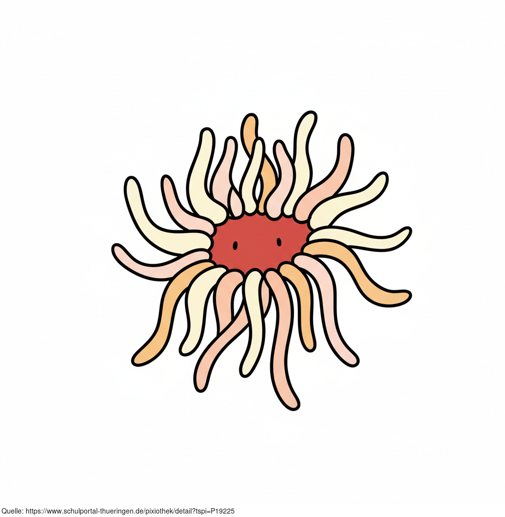 Das Bild zeigt eine gezeichnete Anemone, Seeanemone. Das Bild wurde mittels einer KI (Gemini) erstellt und ist unter CC0 lizenziert. Weitere Bilder aus Herrn Emrich-Försters Bild-Archiv findet man hier: https://pix.foerster.rocks/