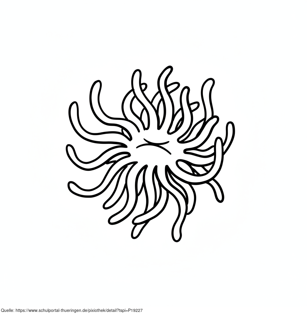 Das Bild zeigt eine gezeichnete Anemone, Seeanemone. Das Bild wurde mittels einer KI (Gemini) erstellt und ist unter CC0 lizenziert. Weitere Bilder aus Herrn Emrich-Försters Bild-Archiv findet man hier: https://pix.foerster.rocks/