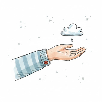 Das Bild zeigt einen gezeichneten Arm mir geöffneter Hand, die einen Wassertropfen auffängt. Das Bild wurde mittels einer KI (Gemini) erstellt und ist unter CC0 lizenziert. Weitere Bilder aus Herrn Emrich-Försters Bild-Archiv findet man hier: https://pix.foerster.rocks/
