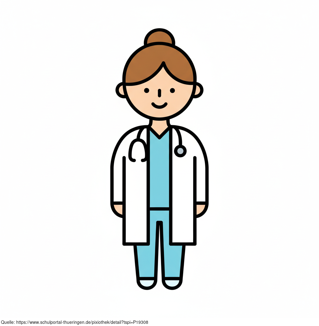 Das Bild zeigt eine gezeichnete Ärztin mit Stethoskop. Das Bild wurde mittels einer KI (Gemini) erstellt und ist unter CC0 lizenziert. Weitere Bilder aus Herrn Emrich-Försters Bild-Archiv findet man hier: https://pix.foerster.rocks/