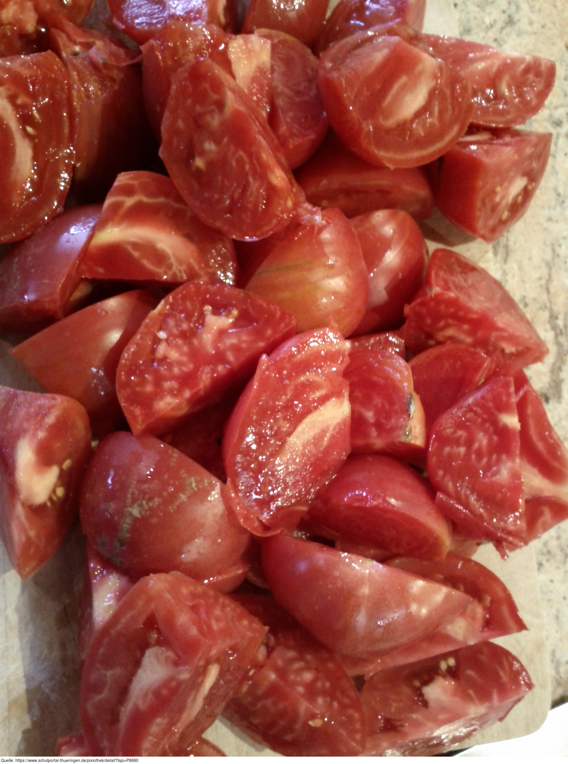 Das Foto gehört zur Serie "Gemüse". Es zeigt stückige Tomaten. Das Bild ist unter CC0 lizenziert und kann somit frei verwendet werden.